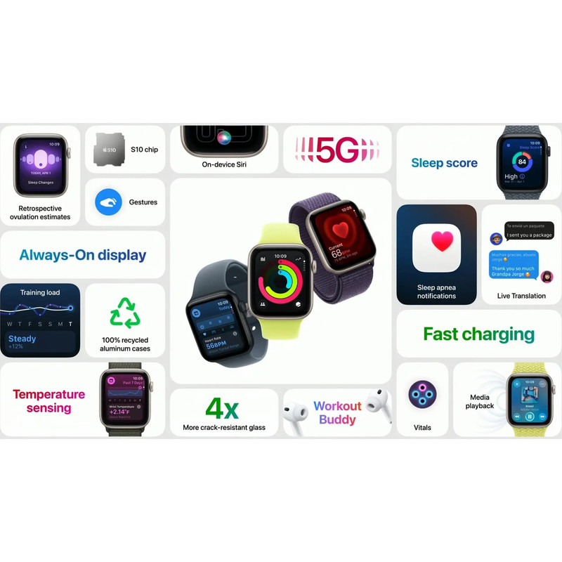 قابلیتهای ساعت هوشمند : کنترل موسیقی (Music Player) , قابلیت مکالمه از طریق بلوتوث , قابلیت تغییر طرح ساعت یا تم , صفحه همیشه روشن (Always-on Display) , قابلیت نصب اپلیکیشن , پشتیبانی از دستیار صوتی , تشخیص سقوط , تشخیص تصادف