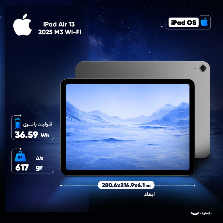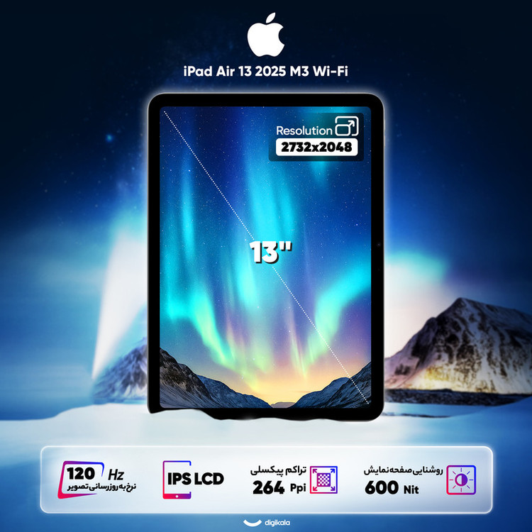 تبلت 13 اینچ اپل مدل iPad Air 13 2025 M3 Wi-Fi ظرفیت 128 گیگابایت و رم 8 گیگابایت