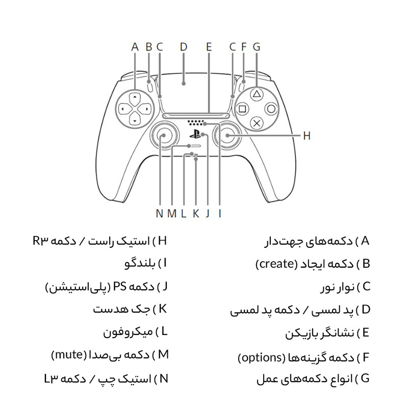 دسته بازی دوال سنس (Dualsense Grey Camouflage) دسته ی جدیدی است که برای کنسول پلی استیشن 5 تعبیه شده است.