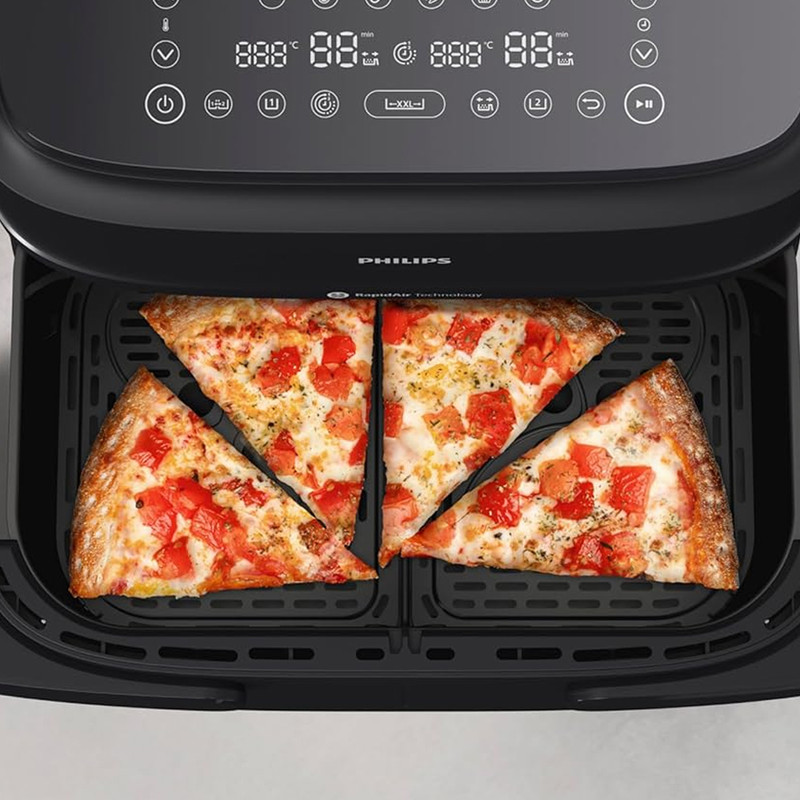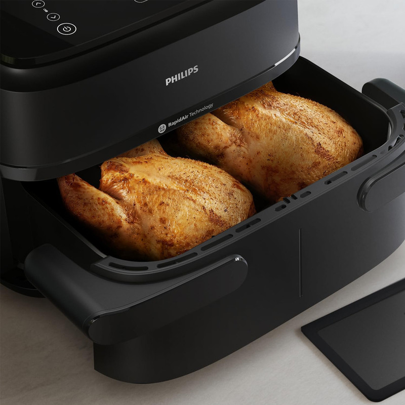 توان مصرفی 2450 وات در کنار سیستم گردش هوای داغ 360 درجه باعث میشود مواد غذایی بهطور یکنواخت پخته و سطح آنها ترد شود، بدون نیاز به روغن زیاد. دمای قابل تنظیم از 40 تا 200 درجه سانتیگراد محدودهای گسترده برای پخت انواع غذا فراهم کرده و وجود شش برنامه پیشفرض شامل پخت مرغ، ماهی، گوشت، سبزیجات، سیبزمینی و کیک گزینههای متعدد آشپزی را در اختیار میگذارد.
