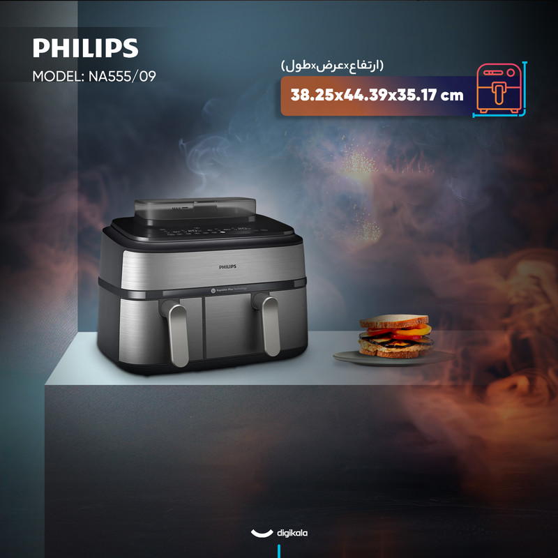 در بخش کنترل و کاربرد، هواپز 9 لیتر فیلیپس مدل NA555/09 از کنترل دیجیتال، قابلیت تنظیم دما، تایمر قابل تنظیم تا ۶۰ دقیقه و امکان تنظیم جداگانه هر محفظه بهره میبرد. این سطح از کنترل، دقت پخت را بالا میبرد و تضمین میکند که هر ماده غذایی با بهترین کیفیت آماده شود.