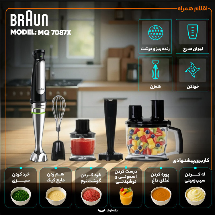 کاربری پیشنهادی: پوره کردن غذای داغ , خرد کردن یخ , خرد کردن گوشت نرم , درست کردن اسموتی و نوشیدنی , خرد کردن سبزی , هم زدن مایع کیک