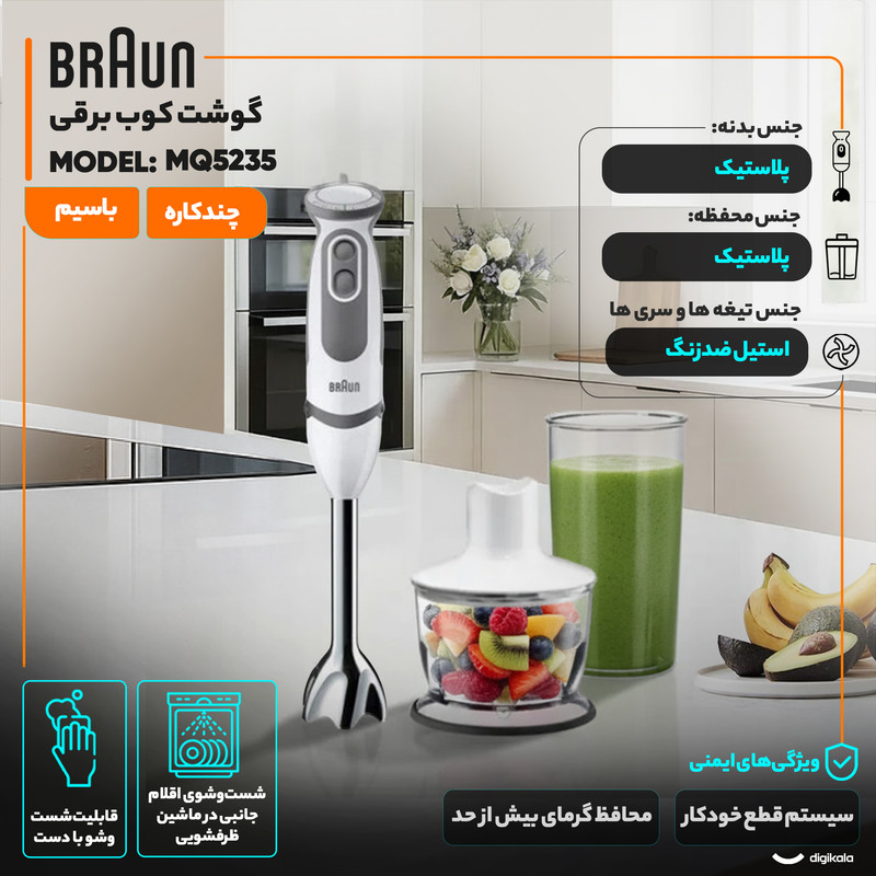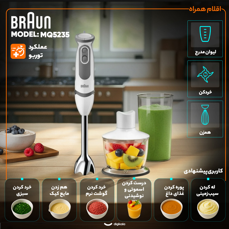 کاربری پیشنهادی: خرد کردن سبزی , خرد کردن گوشت نرم , درست کردن اسموتی و نوشیدنی , هم زدن مایع کیک , له کردن سیبزمینی
