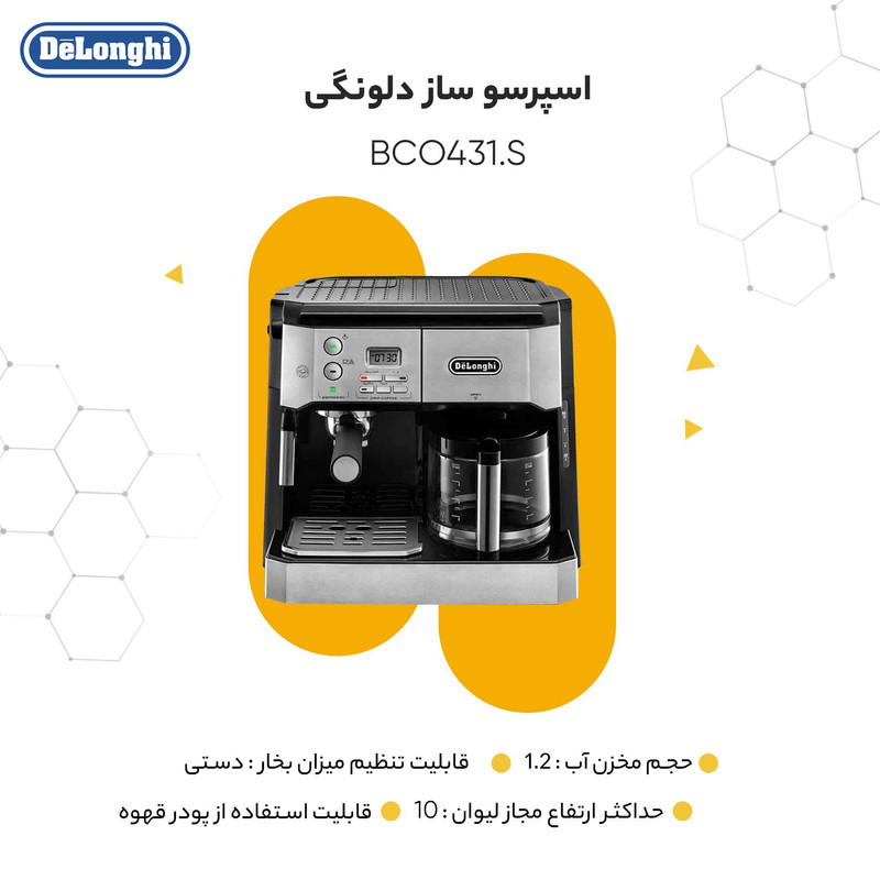 در زمانی که انتخاب یک اسپرسوساز دلونگی مانند مدل BCO431.S را در نظر دارید، مهم است تا به ویژگیها و امکانات آن دقت کنید. این دستگاه با قابلیتها و امکانات منحصر به¬فرد خود، تجربهای بینظیر از تهیه قهوه اسپرسو را فراهم میکند.