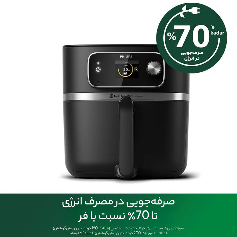 با استفاده از این سرخ کن کم روغن و بدون روغن فیلیپس در مقابل اجاق گاز خود تا 70 درصد در مصرف انرژی صرفه جویی کنید و تا 40 درصد سریعتر بپزید.