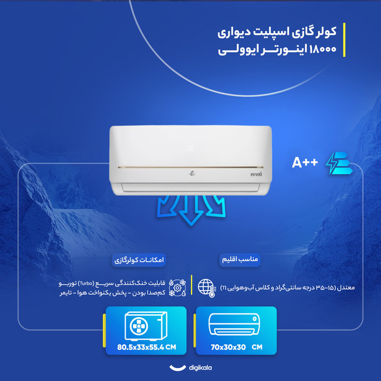نمایشگر دیجیتال روی ریموت , کنترل کامل تنظیمات دما و فن , تنظیم تایمر از طریق ریموت , تنظیم جهت پرتاب باد از راه دور , قابلیت تنظیم حالت توربو از ریموت , طراحی ارگونومیک و سبک